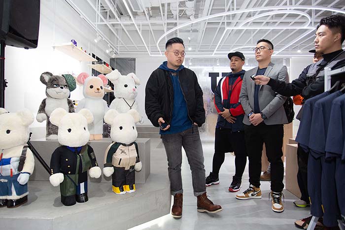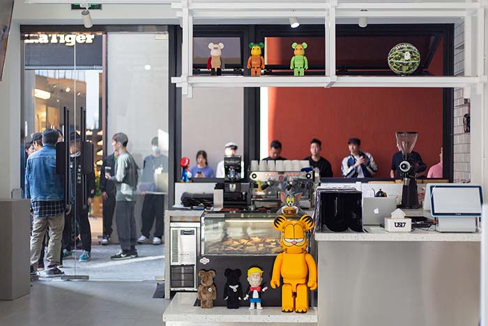 12 月 13 日开业当天,易建联与 HAYCOFFEE 主理人 Edwin 共同现身开业现场,店内不仅陈列阿联签名球衣及战靴,更展出 BE@RBRICK 等潮流、艺术品。