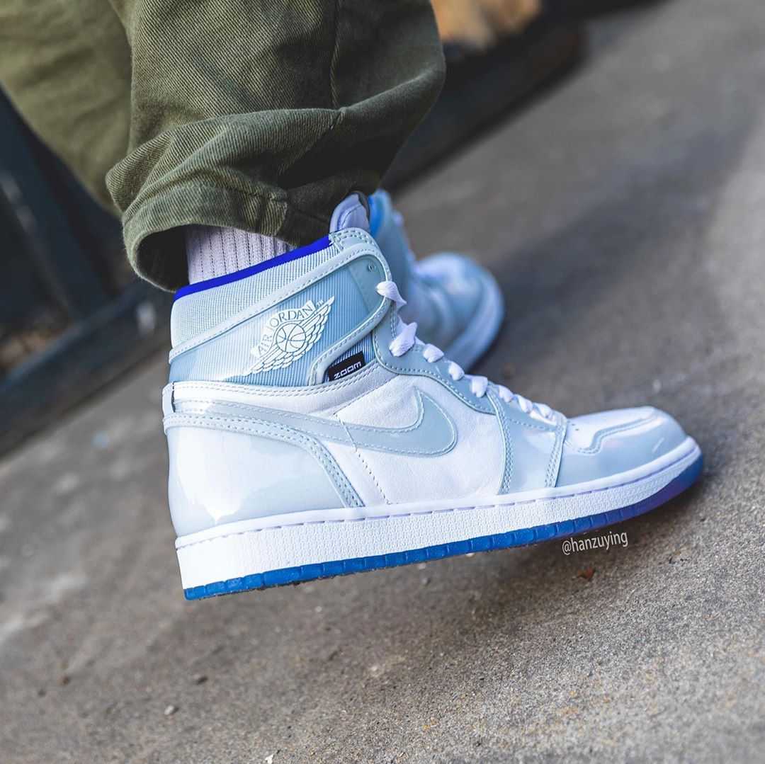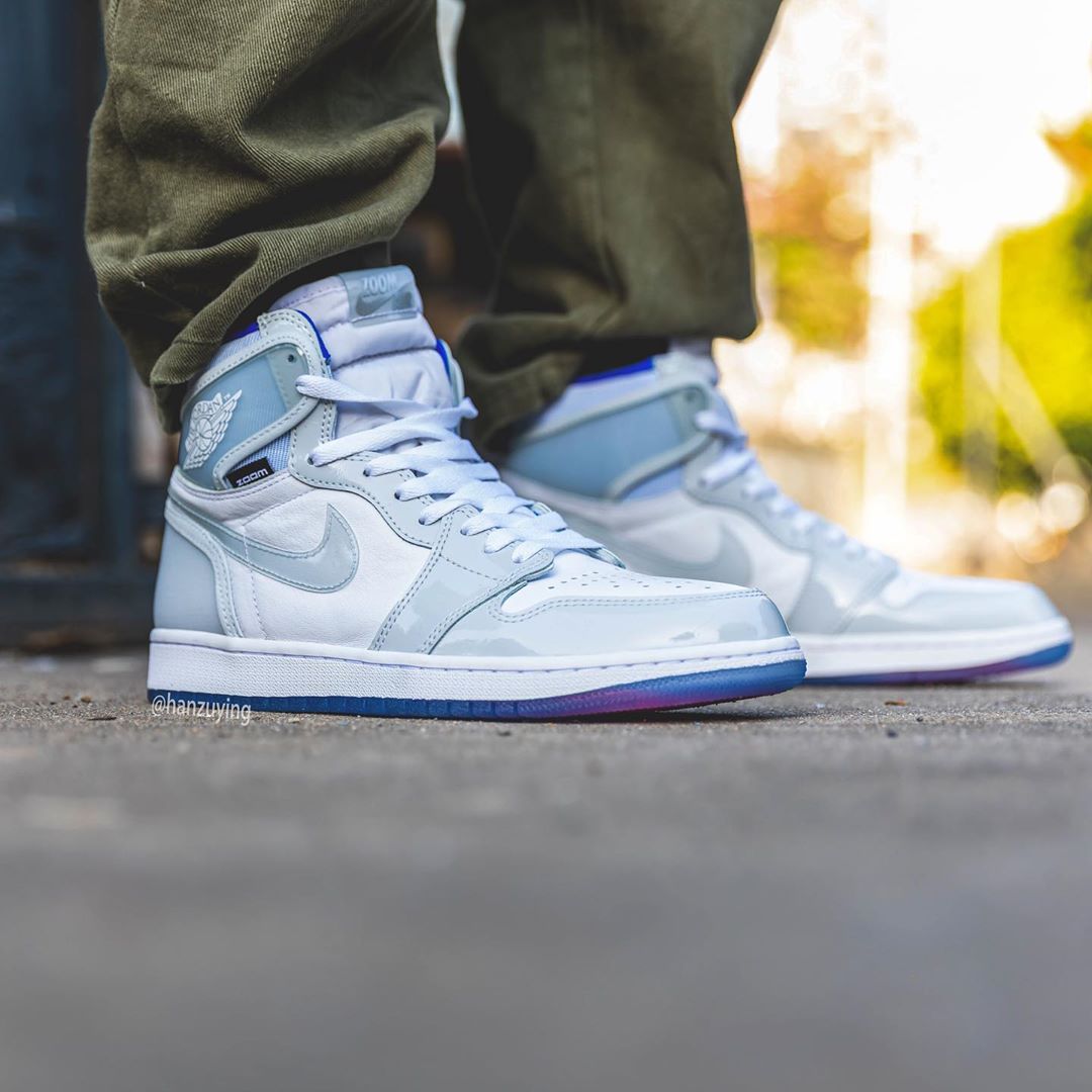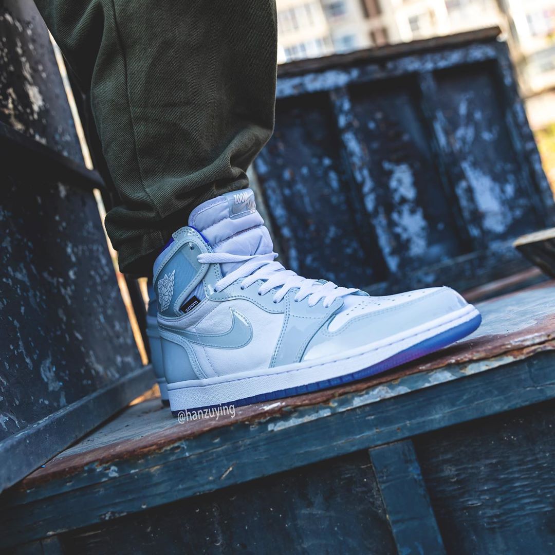 前段时间搭载 Zoom 缓震的变色龙 Air Jordan 1 正式发售,本周 Air Jordan 1 High Zoom 曝出第二款配色的实物照。