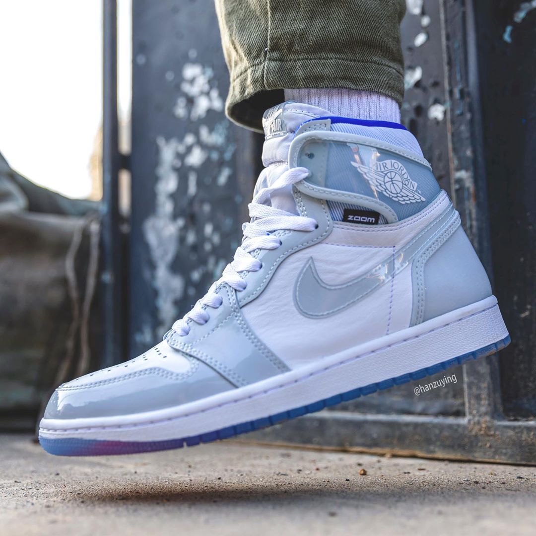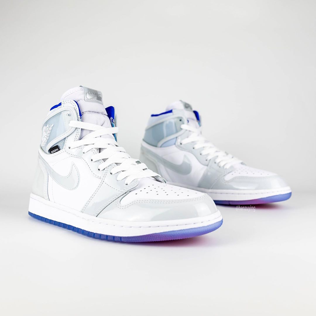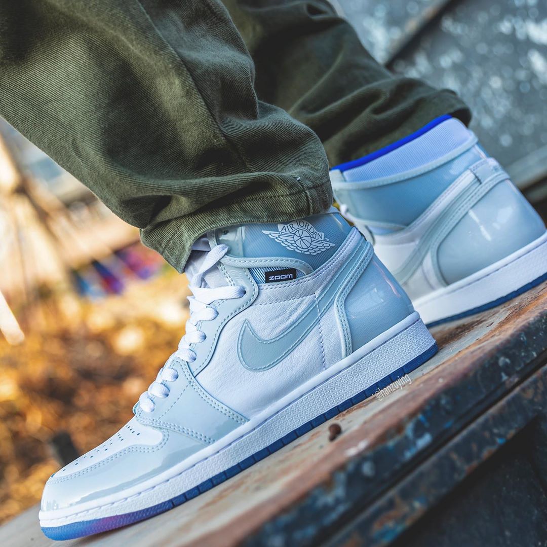 前段时间搭载 Zoom 缓震的变色龙 Air Jordan 1 正式发售,本周 Air Jordan 1 High Zoom 曝出第二款配色的实物照。