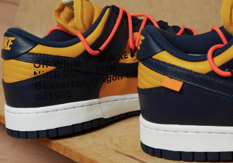 而伴随着发售日期临近,近日黄蓝配色的 OFF-WHITE x Nike Dunk Low 又有一组实物美图释出,让我们一起来欣赏一下!