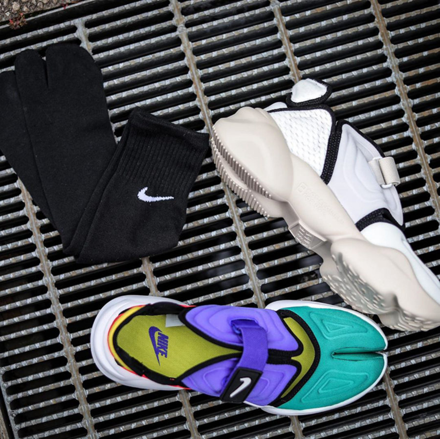诞生与 1996 年的 Nike Air Rift 鞋款可以说极具创造性,独特的分趾鞋头设计,设计灵感源自肯尼亚赤足长跑选手们的建议。而以 Air Rift 命名,则是取自肯尼亚东非大裂谷 Great Rift Valley。