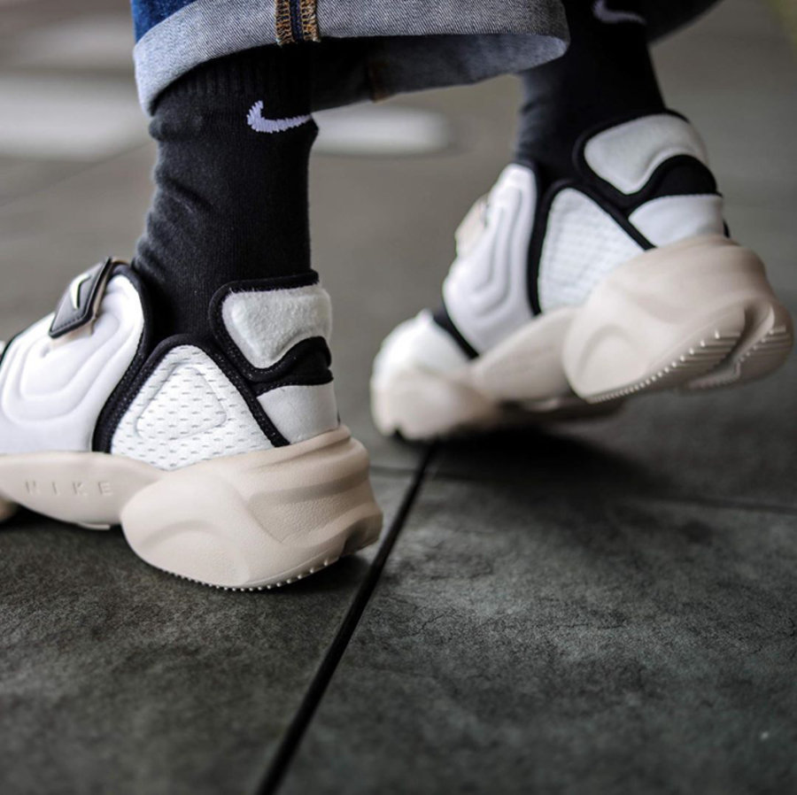 鞋面中部可以看出不同厚度填充物带来的层次感,其上搭配一条黑色皮革材质打造的绑带,白色 Nike Swoosh 点缀,呈现出十分简约的气质。