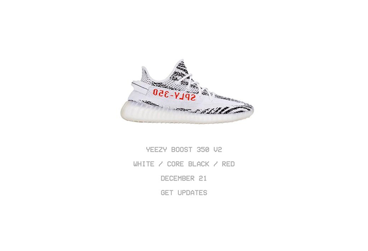 紧接着 12 月 21 日白斑马 Yeezy 350 V2 “Zebra” 将在 Yeezy Supply 官网和北美地区的 adidas APP 补货登场,独创「斑马」主题,在整个球鞋历史上都有着重要的历史地位。