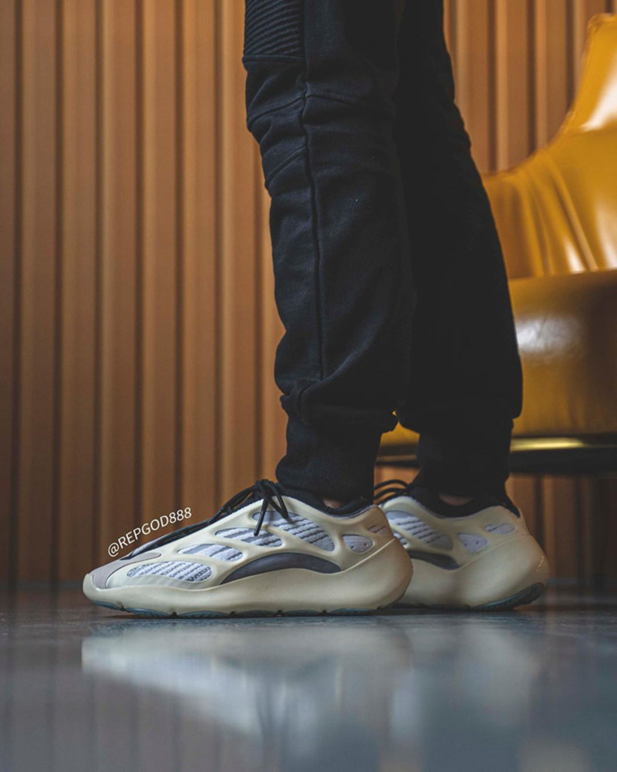 本月最后一双重磅 Yeezy 当属早已真香的 Yeezy 700 V3!据悉将在 12 月 23 日正式发售。更为科幻的鞋身造型,搭配全新材质打造的鞋面,乳白色框架外壳自带夜光效果。