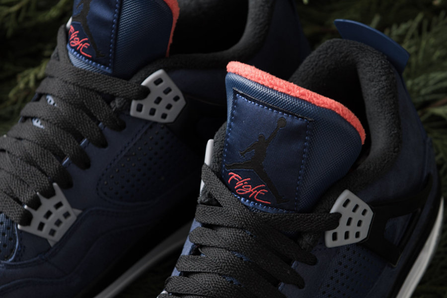 整双鞋采用经典 Air Jordan 4 鞋型为设计蓝本,鞋身采用深邃的午夜蓝色调设计,加以黑色鞋身支撑、灰色鞋带扣、黑白灰三色构成的中底与外底。