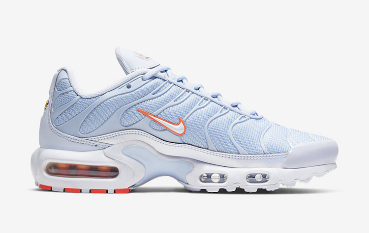 整双鞋在 Air Max Plus 鞋型的基础上,一袭淡蓝色覆盖鞋身,呈现出十足小清新姿态。