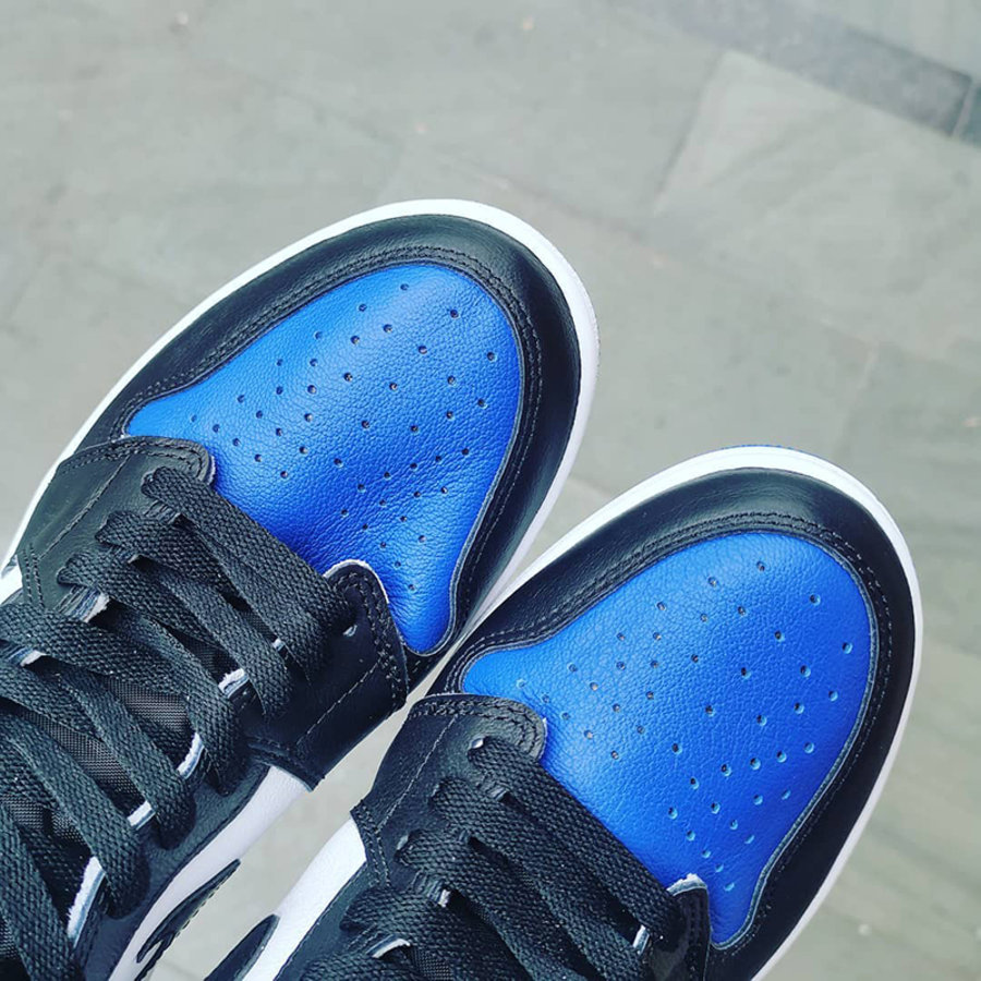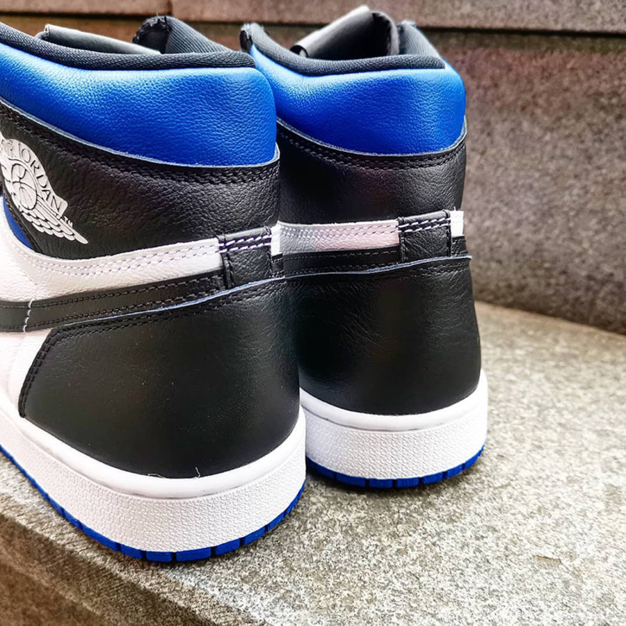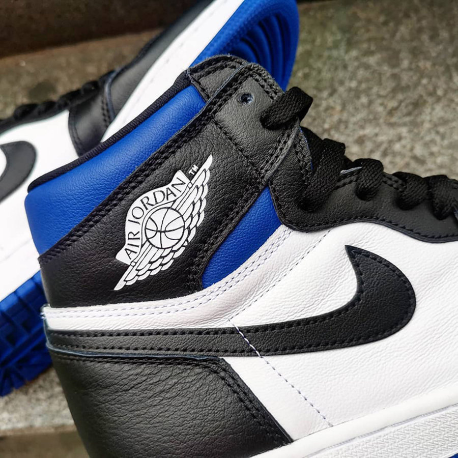 整双鞋以经单 Air Jordan 1 High 为设计蓝本,鞋身色彩涵盖黑色、白色以及蓝色。鞋身也由经典荔枝皮材质打造,乍一看呈现出十足「大闪电」气质。
