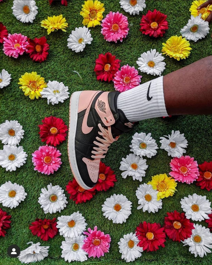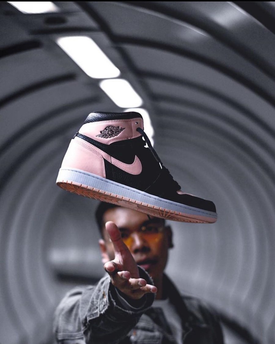 大面积黑色搭配脚趾和鞋帮的粉色,虽然不是 OG 经典搭配,但还是极为和谐。