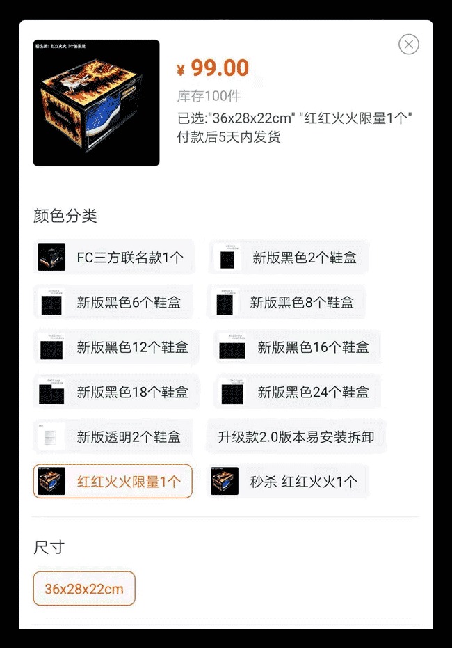 由于印刷工艺复杂,此鞋盒为限量产品,售价¥99 RMB/个,售完即止。