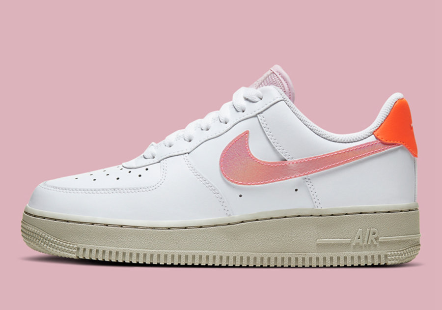 后跟位置搭配亮眼橙色细节,与粉色 Swoosh Logo 衔接,为整双鞋带来极为活泼跳跃的风格。搭配米白色中底完善整双鞋的设计。