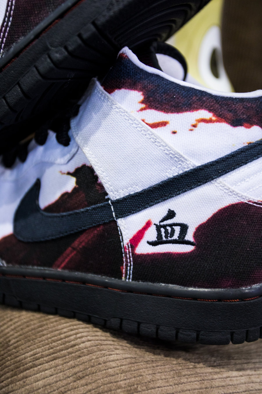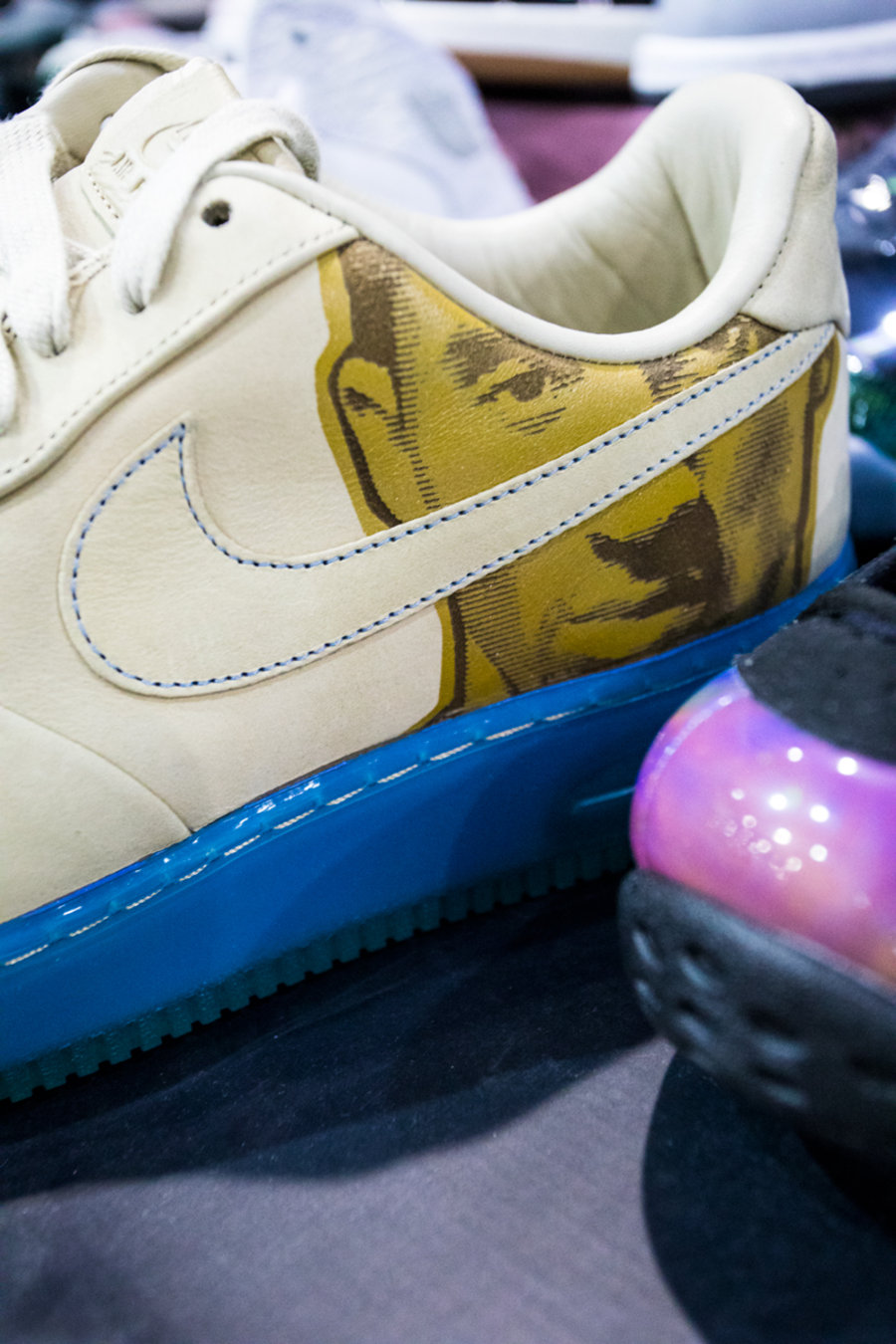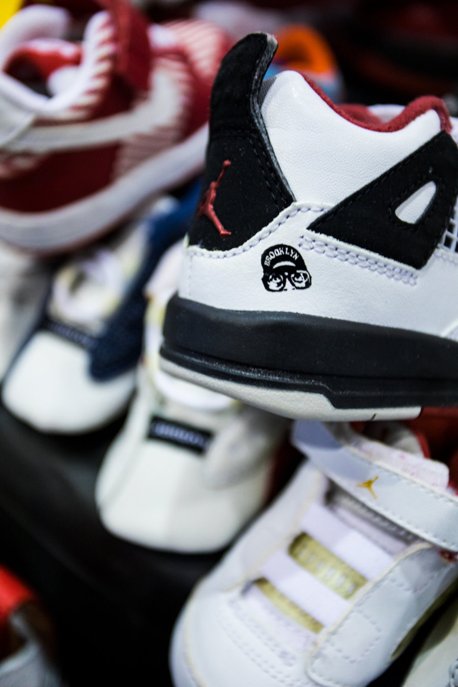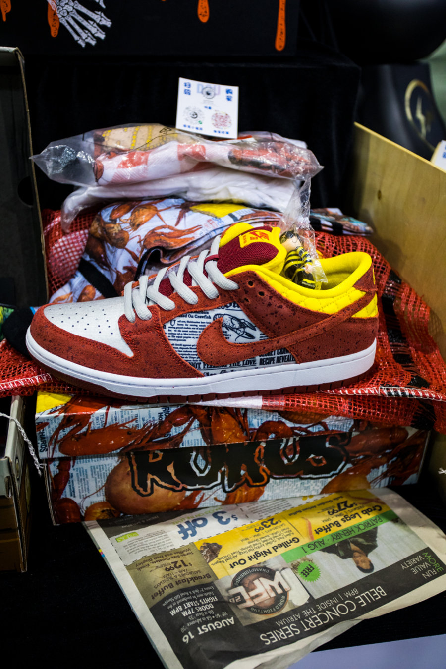 现场一张张桌子上都铺满了球鞋,千奇百怪眼花缭乱,别说倒钩 Air Jordan 1,就是 OFF-WHITE x Nike 的 “The Ten” 在这都不算有排面。