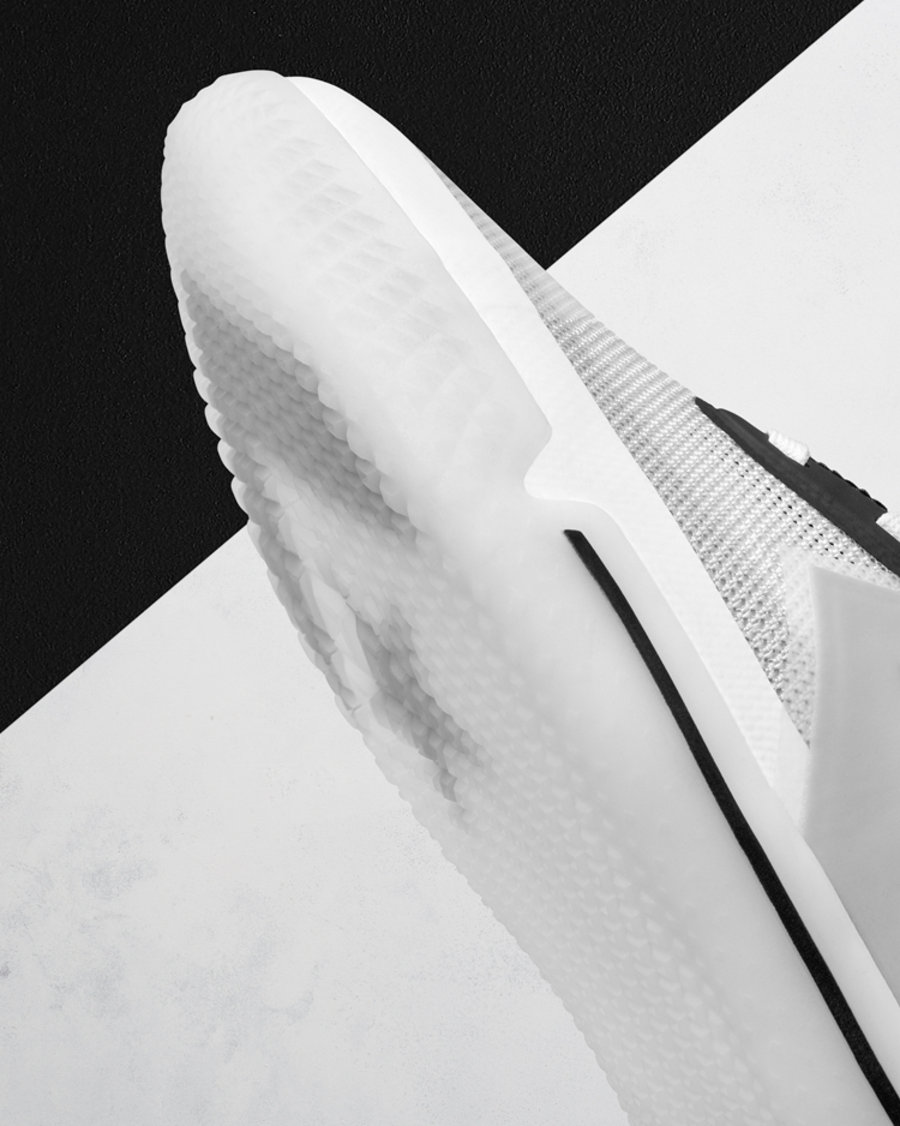 整双鞋采用简约黑白色调,鞋身前半部分为白色,后半部分为黑色,构成独特阴阳效果,同时也将月食专题体现的淋漓尽致。