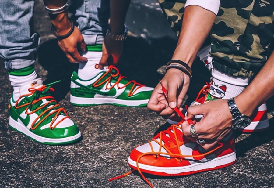 为了贴合圣诞氛围塔克也找了三双红红绿绿的球鞋,分别是抗乳腺癌 KD12、白绿 OFF-WHITE x Dunk Low、沃尔伯格专属 Air Jordan 4,不看不知道,一看吓一跳,这三双鞋真是一双比一双更狠。