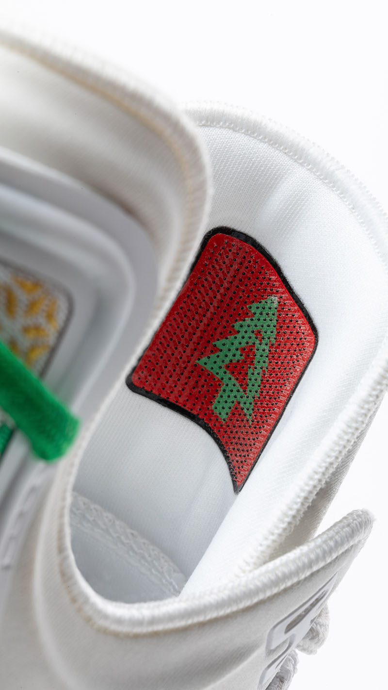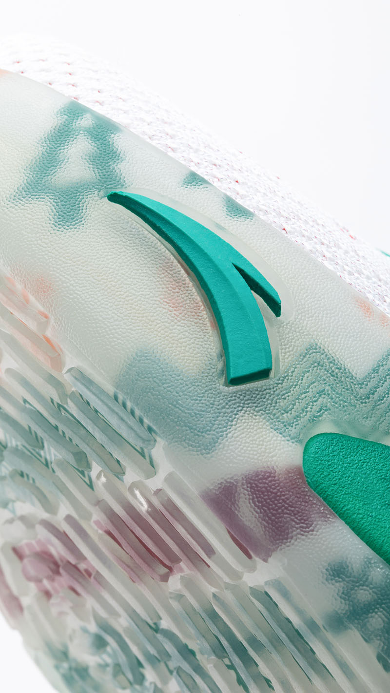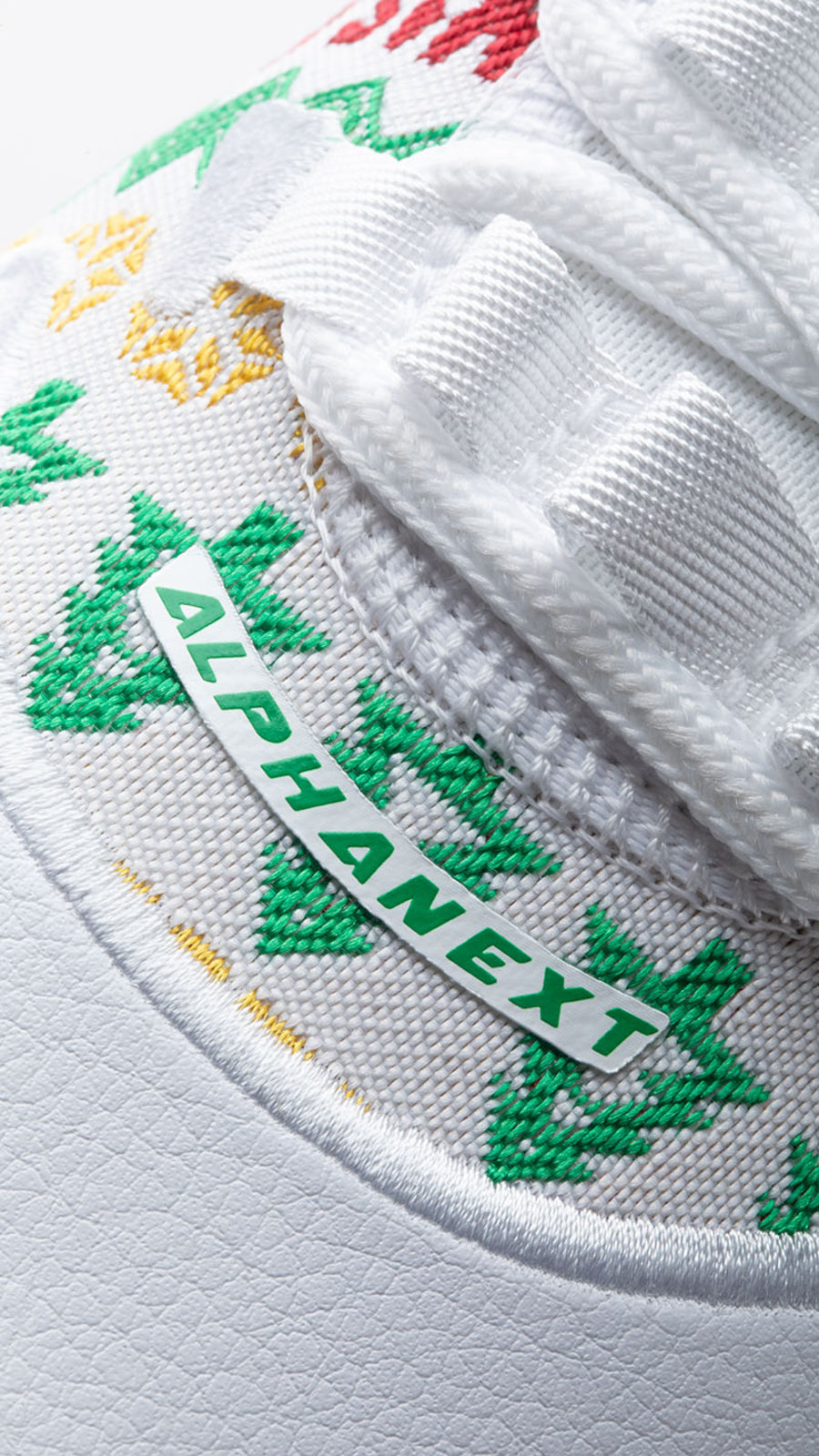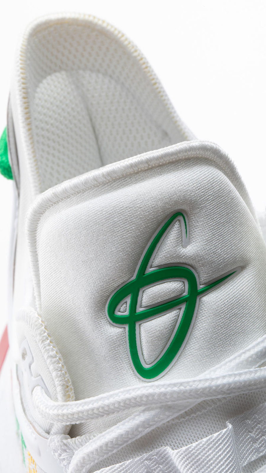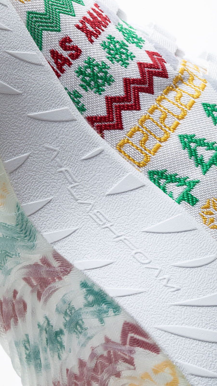 搭配白、绿渐变的 A-Flashfoam 闪能中底及同样花纹的果冻外底,营造喜庆的节日气氛!