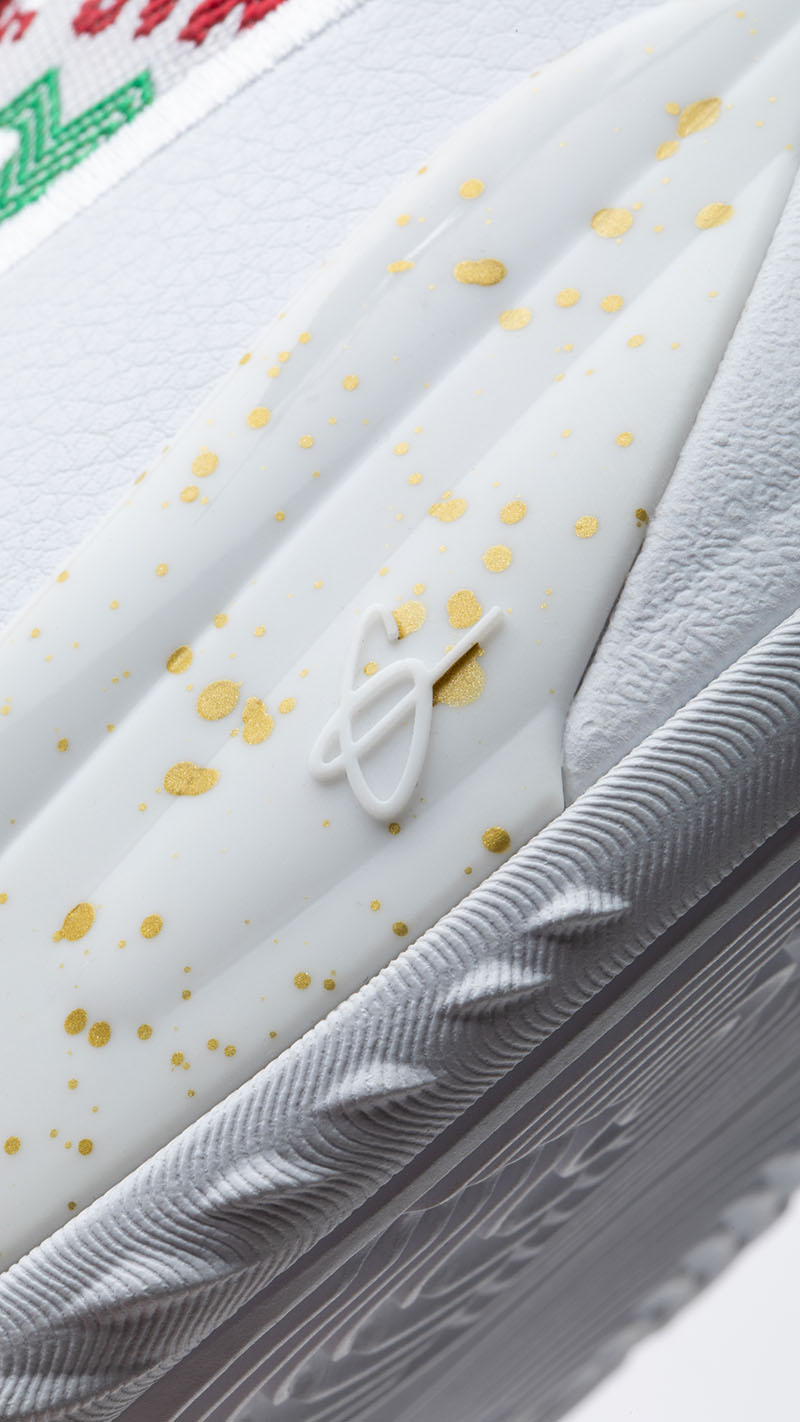 鞋舌点缀海沃德个人 Logo,彰显专属身份,鞋面花纹与果冻外底跟 KT5 XMAS 相得益彰。