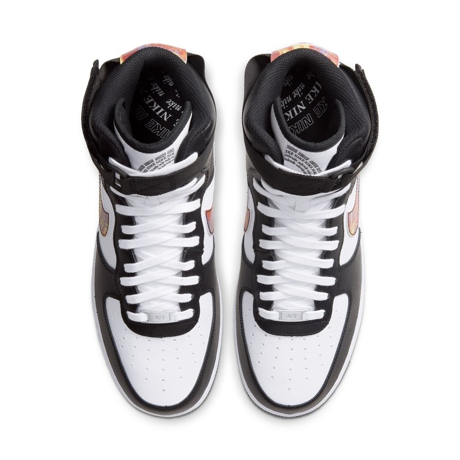 近日,一双钩子十分特别的 Air Force 1 High 官图首度曝光。 这双鞋以黑白为基色,侧身以醒目的晕染风格 Swoosh Logo 装饰,延伸至后跟。 花色花纹上还带有圆环图腾风格 Nike Logo 装饰,鞋舌、鞋帮后侧以相同装饰呼应,整体设计独具一格。 目前暂不得知具体鞋款主题以及发售信息,感兴趣的小伙伴可以继续关注我们的资讯。
