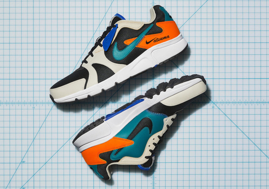 全新鞋款名为 Nike Atsuma,整双鞋以低帮造型示人,鞋面由网眼与皮革材质打造,同时配以黑色、米白色、孔雀绿色以及橙色妆点,为鞋面带来丰富层次感的同时,也为整双鞋呈现出十足复古气质。