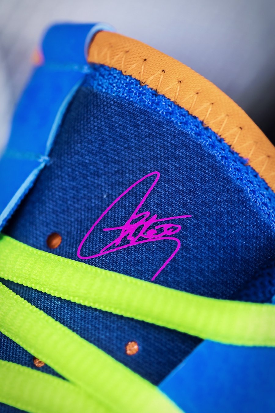 熟悉的库里英文签名,出现在右脚鞋舌内侧。