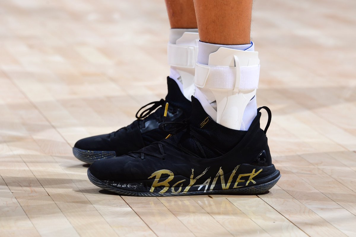 下面这双 Curry 5 “BoYaNek” 配色则是源自库里送给老爸 Dell Curry 父亲节的礼物。