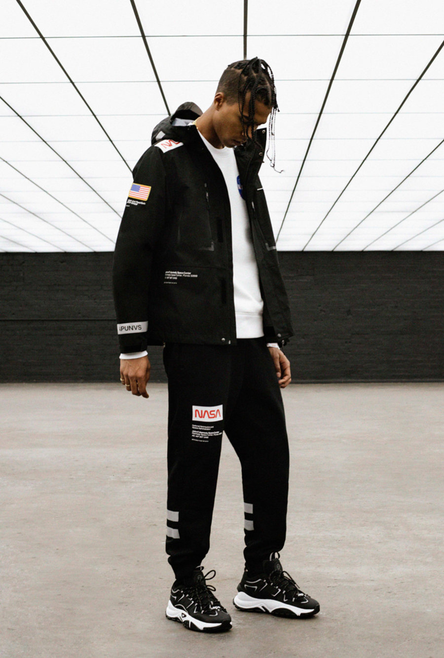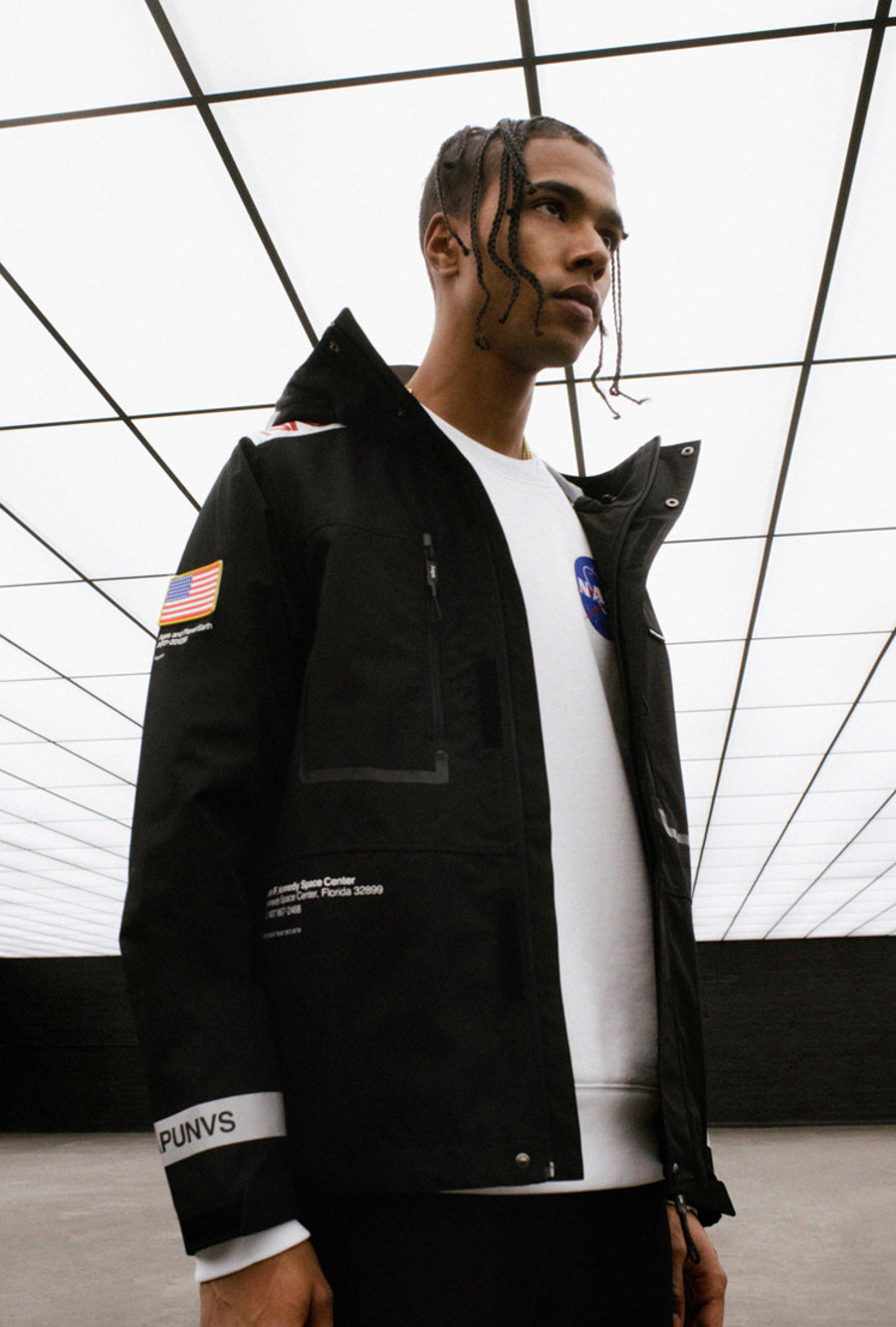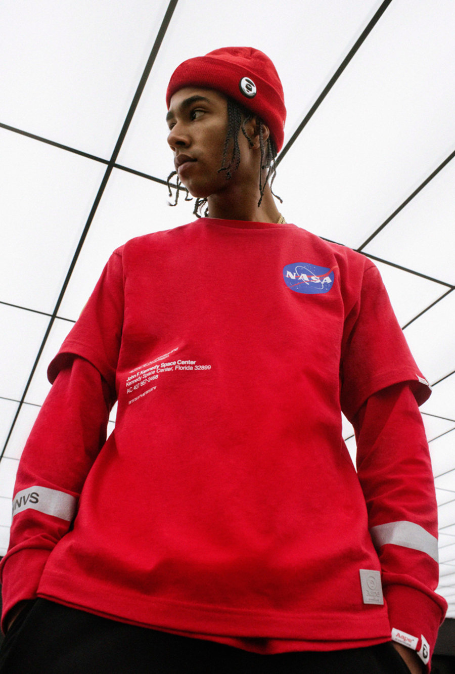 该系列服饰单品以 NASA 惯用的黑、白以及红色为主调。