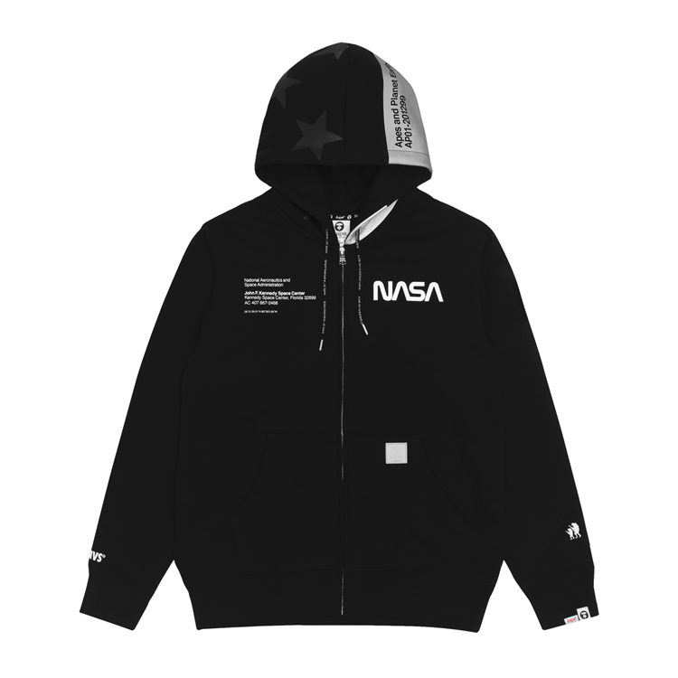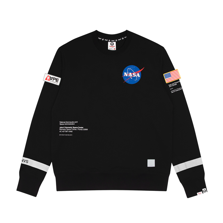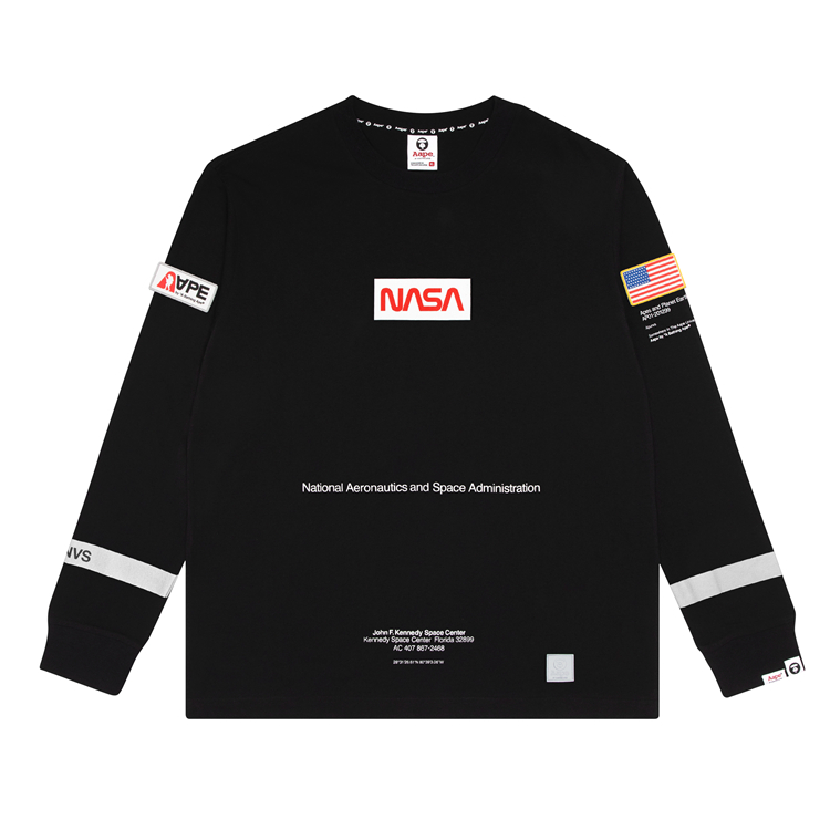 近日,AAPE 宣布将与 NASA 携手打造 2019 联名系列,首次合作双方便带来一系列充满太空工业风的长、短袖 T恤、卫衣、长裤、帽衫、外套等单品。