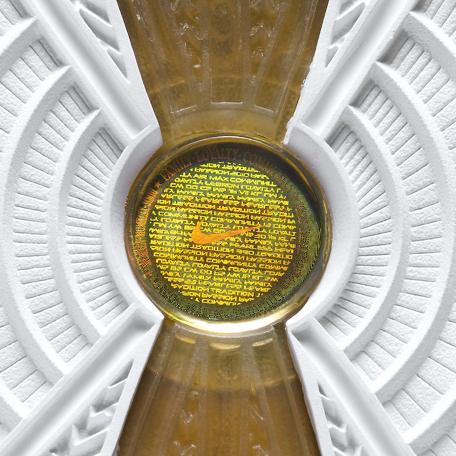 同时作为中秋主题配色,整双鞋一袭华丽的白金装扮,鞋面部分暗藏祥云花纹,细节更注入众多金属质感营造。