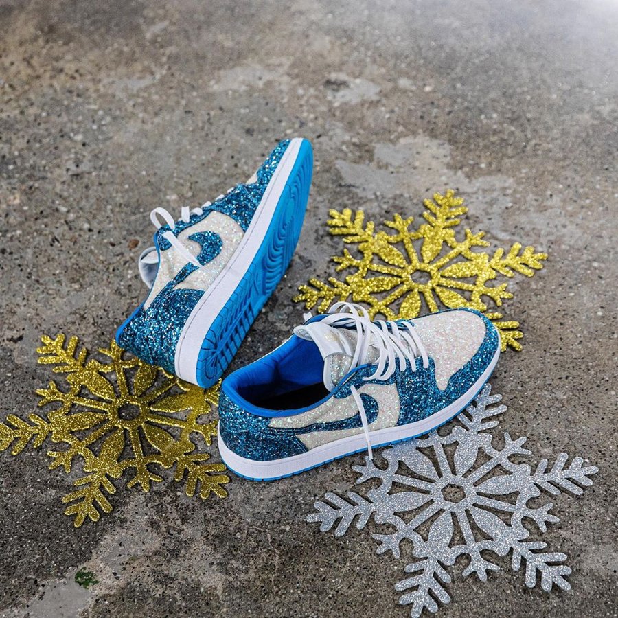球鞋定制依旧是主打服务,在圣诞节推出的低帮北卡 Air Jordan 1 Low 全身钻石加身,可谓奢华至极。