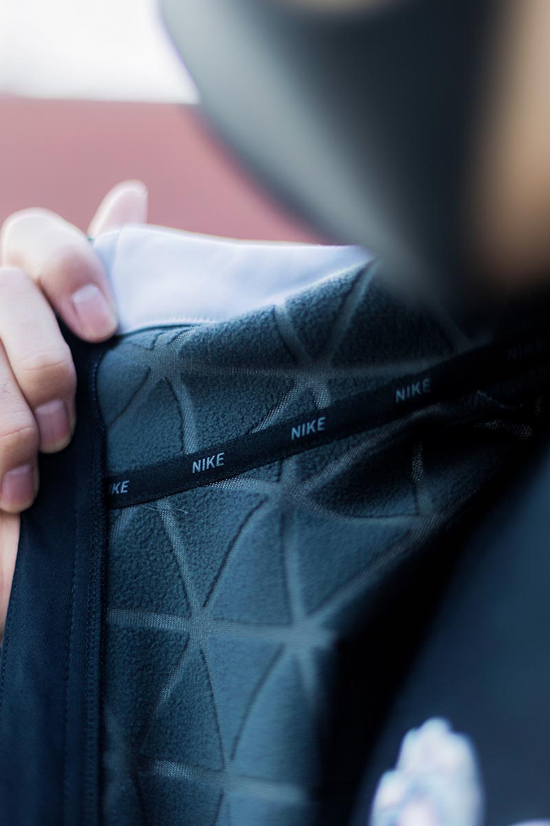 另一件训练夹克将金色细节注入其中,全新设计的几何内衬,进一步完善保暖又透气的平衡需求。
