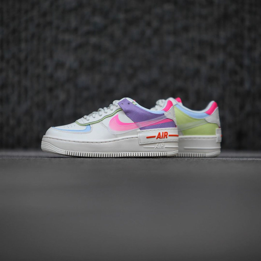 鞋身注入蓝色、粉色、绿色、紫色以及橘色,为整双鞋呈现出彩蛋一般的视觉效果。侧身阴影 Swoosh Logo 设计,更是呈现出独特的立体效果。