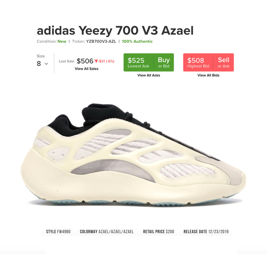 尽管官方发售价降了 100 美元,但 Yeezy 700 V3 的炒卖价如今却翻了一倍多。