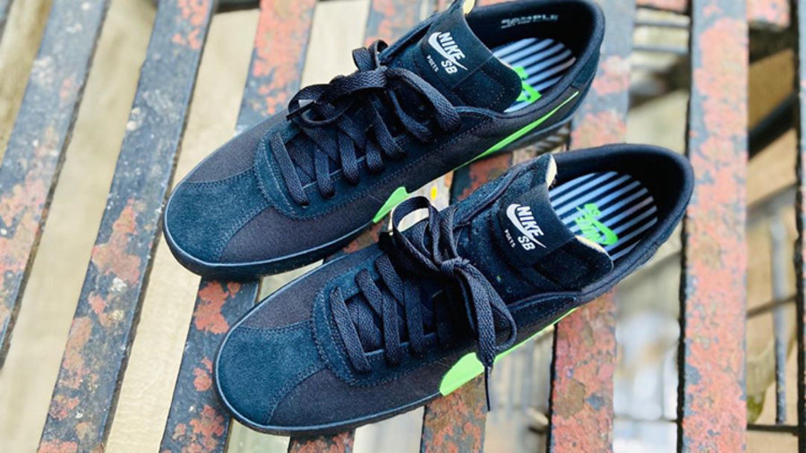 鞋垫上也采用特殊线条勾勒,同时点缀荧光绿色 Nike SB Logo。