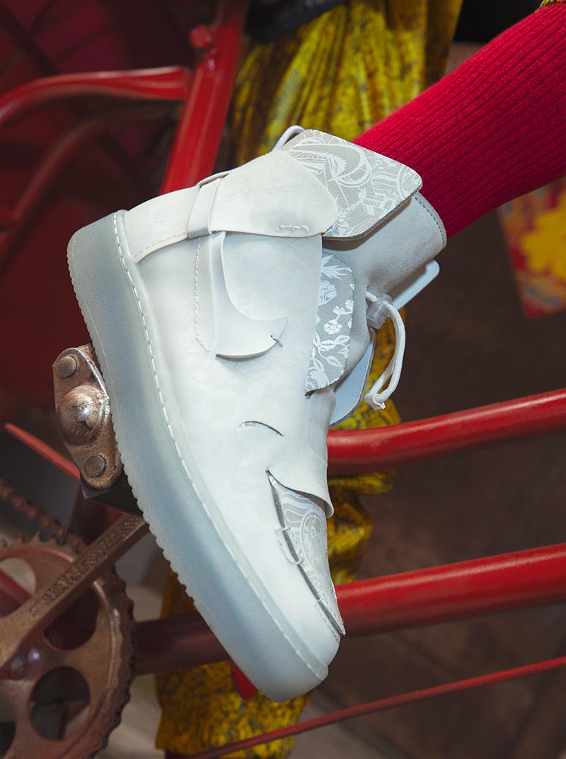 中底注入剪纸图案装饰。