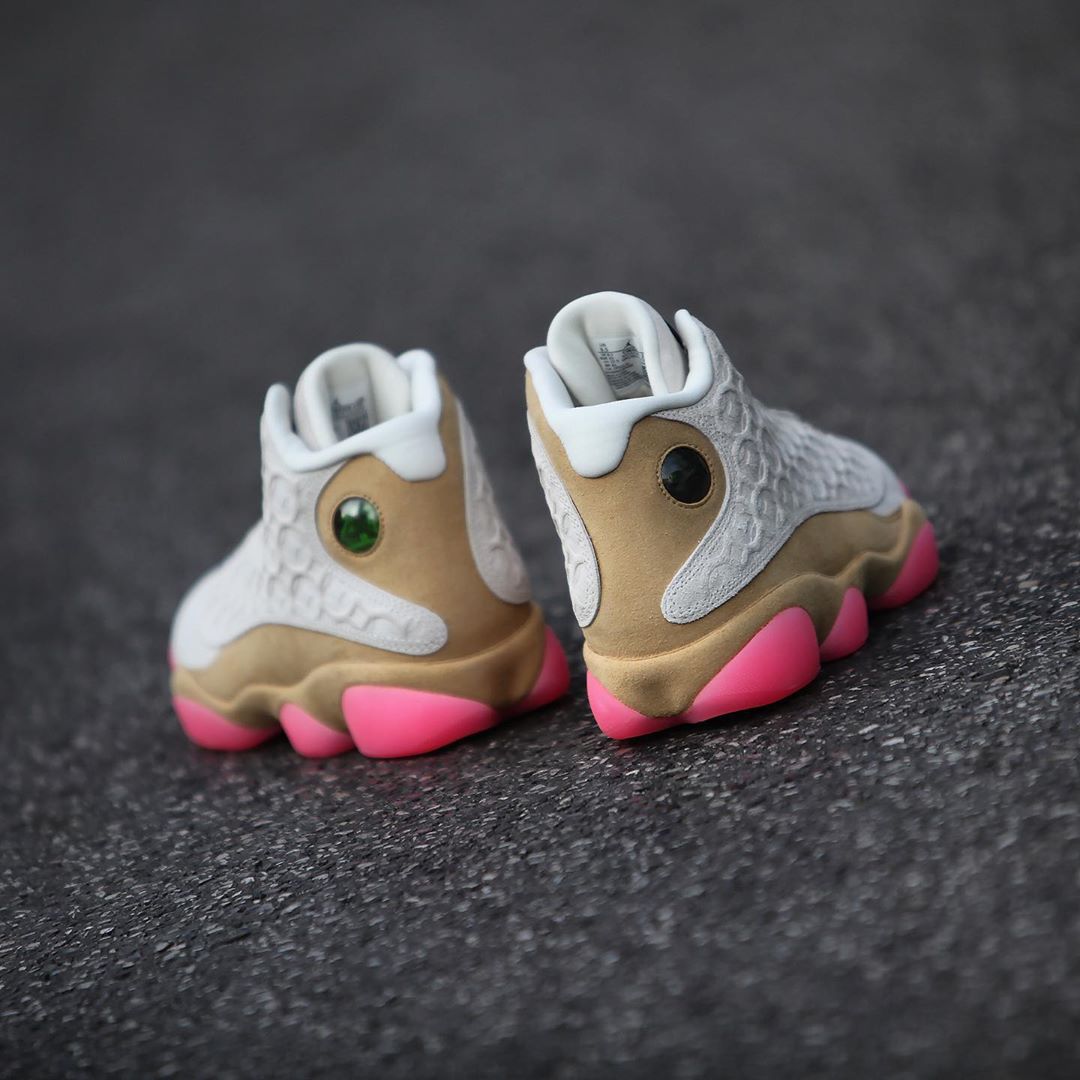 亮粉撞色点缀中底,整体设计颇有几分兵马俑配色 CLOT x Air Jordan 13 Low 联名的独特气质!