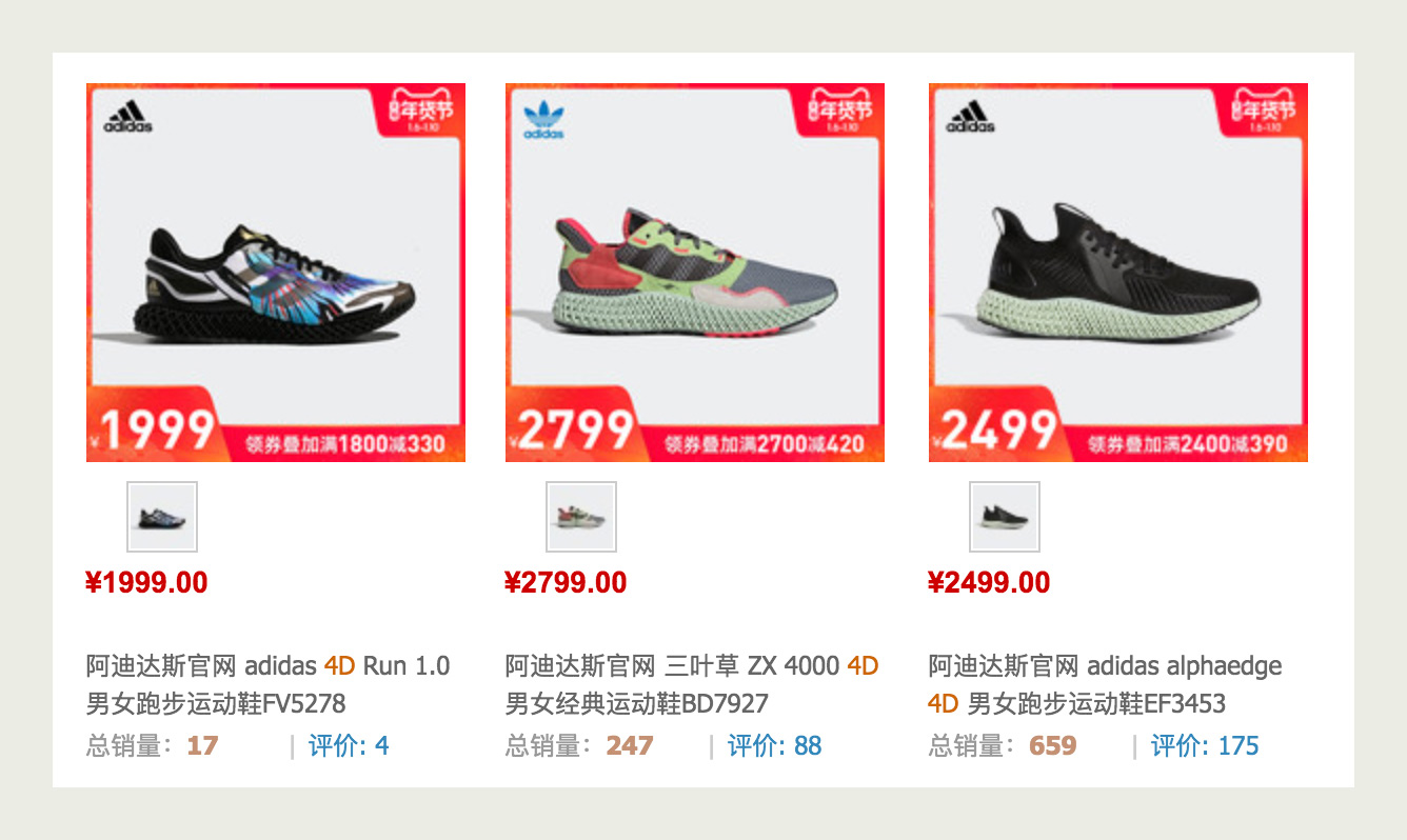 然而更加重要的是,adidas 4D Run 1.0 的发售定价大幅度降低!中国区的售价为 ¥1999 RMB。