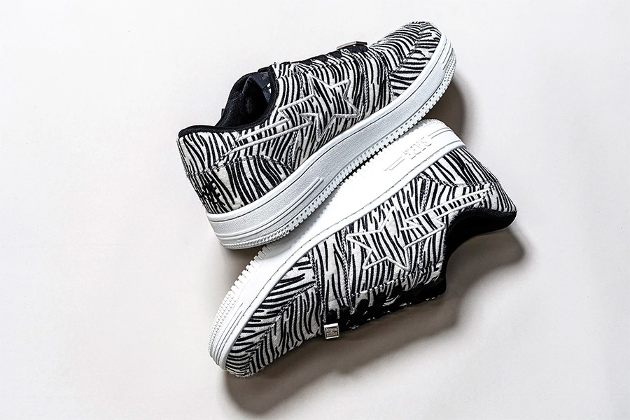 在二十周年之际,BAPE®️ 也公布了多个周年纪念配色,除了纯白和纯黑两个经典百搭装扮外,还有多个以野兽皮毛纹理为主题的野性新品。