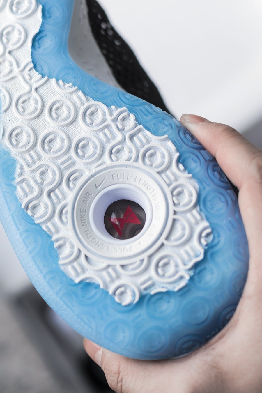更重要的是,气垫位置上移,与 KD12 一样,直接同鞋垫接触。