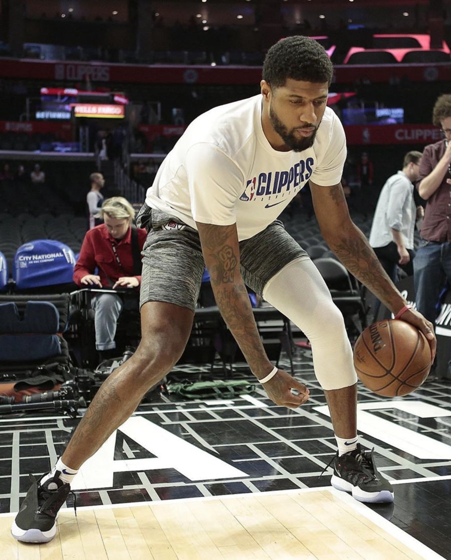 而更引人注目的是,他率先上脚最新一代签名战靴 PG 4「快船配色」,而这也是这款配色首次曝光!