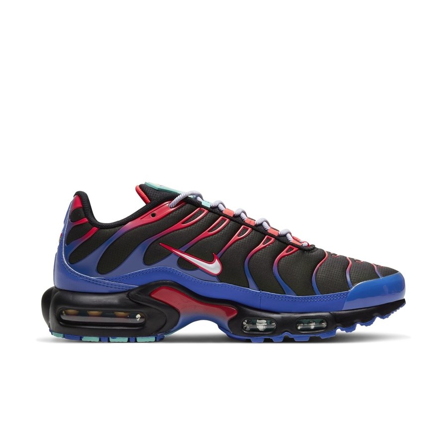 整双鞋在 Air Max Plus 鞋型的基础上,辅以红、蓝渐变装扮覆盖鞋身,呈现出酷炫十足的质感。