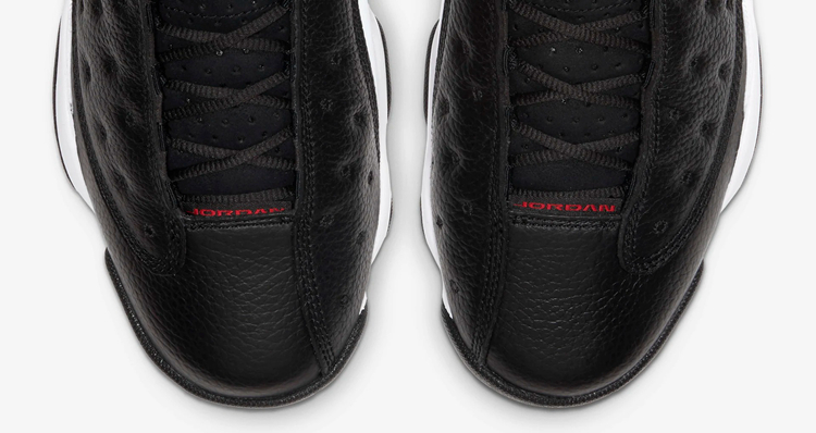 鞋舌点缀红色 Jumpman Logo,鞋带前端位置采用同色 Jordan 标签妆点,整体风格十分犀利。