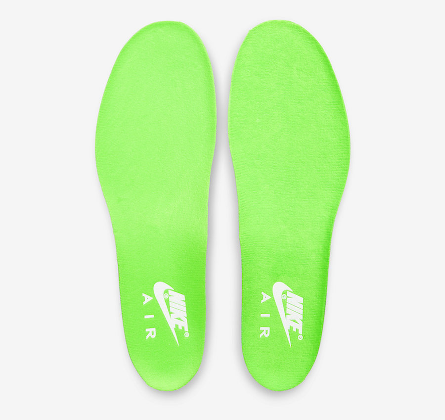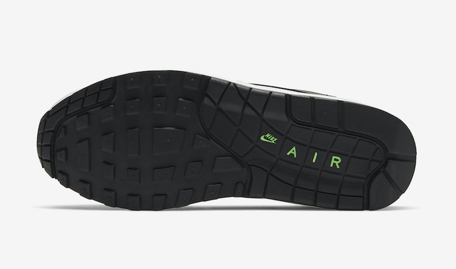 Air Max 1 为灰蓝绿构色,绸缎材质鞋帮,鸳鸯构色鞋垫。