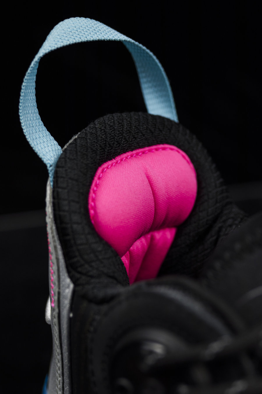 为配合高耸的后跟设计,跟腱处填充相当厚实。由于整体包裹系统的变化,填充材料和厚度相比韦德之道 ∞ 也有所不同。