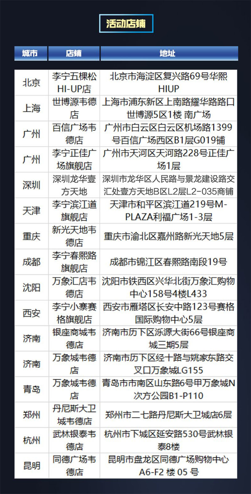 明天以下指定店铺还有限量礼盒免费赠送,感兴趣的朋友可以前往「李宁篮球」公众号了解详情。