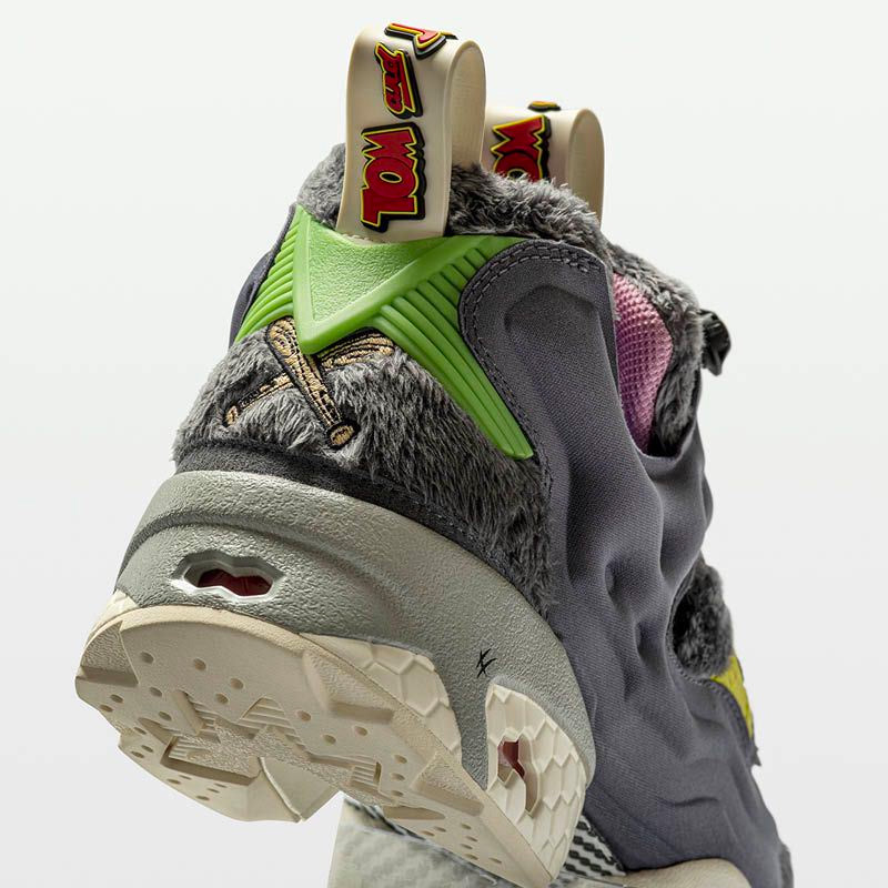 这双 Pump Fury 在配色和材质选用上都完美还原了 Tom 形象,冷灰色调打底,以亮眼色系点缀,仿皮草绒毛材质也是让人难以抗拒的细腻细节。