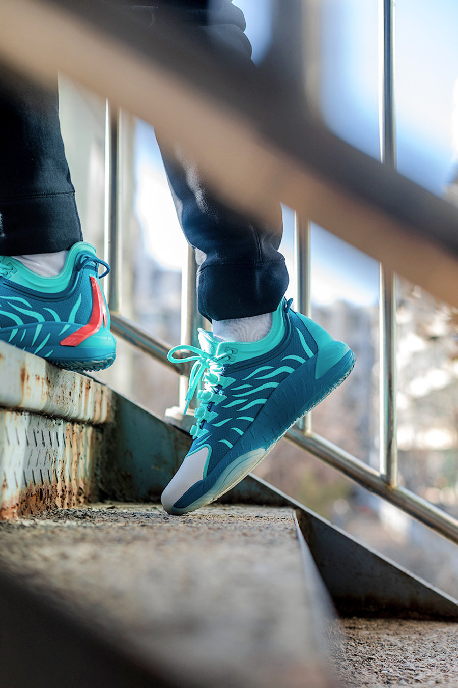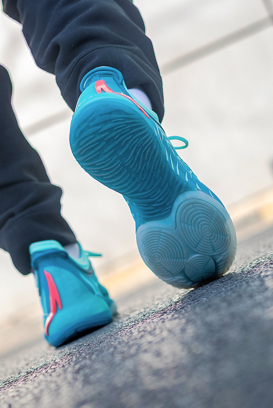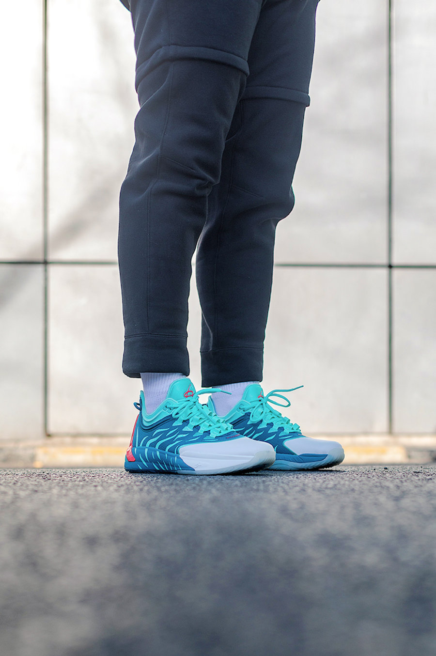 整双鞋上脚表现十分清爽,孔雀蓝色搭配白色的设计营造出十足的活力。