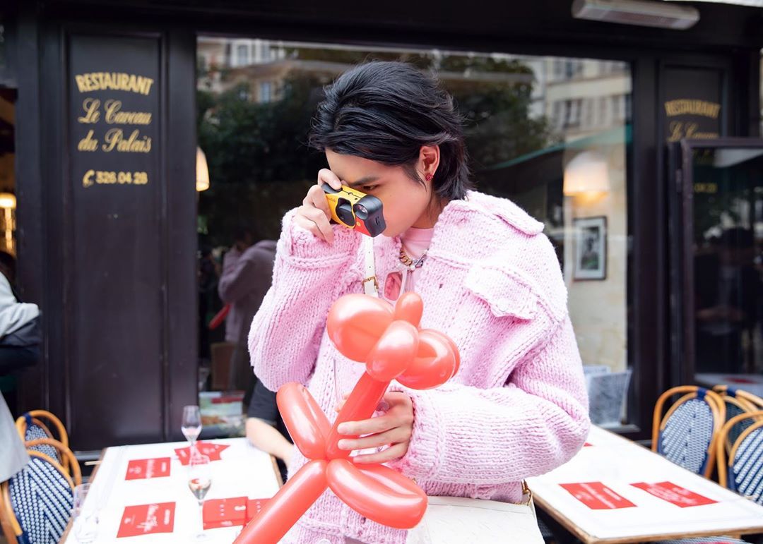 刘昊然一身宽松的街头略显俏皮,也在活动中体验了一把童年久违的吹泡泡。