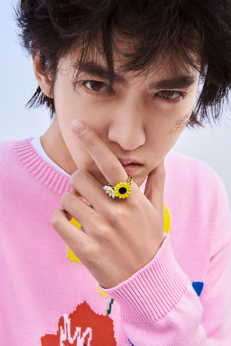 此外吴亦凡在型录中演绎的粉色花卉圆领针织衫同样抢手,属于特别限定款。