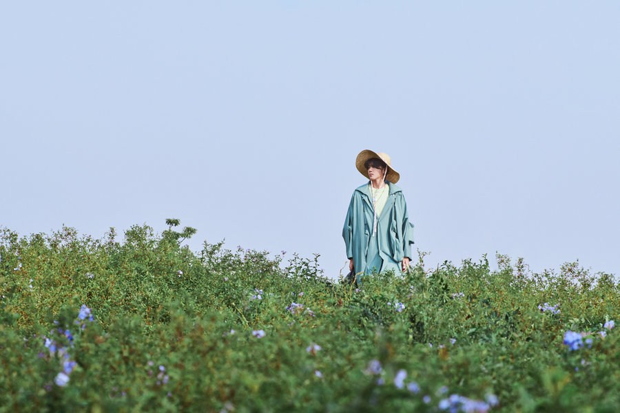 范丞丞一身宽松西装,粉嫩色系与草帽完美呼应了活动花朵与园艺的主题。