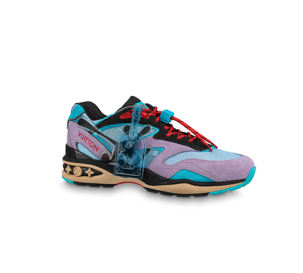 全新鞋型 LV Trail 有种将复古老爹鞋与户外登山鞋糅合混搭的感觉,卡其色中底凸显复古感。