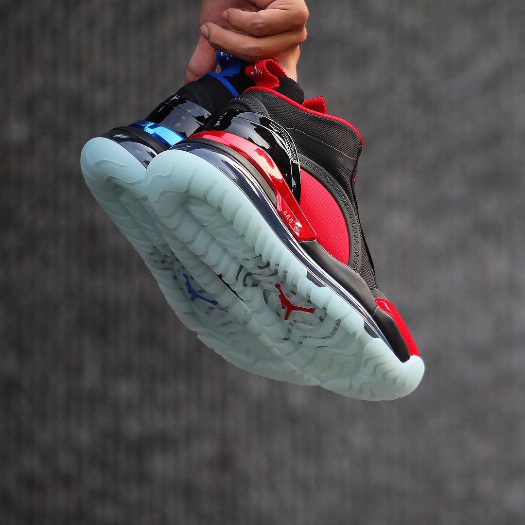 以搭载 Air Max 720 缓震的 Jordan Aerospace 720 为设计蓝本,融入代表巴黎圣日耳曼的红、蓝鸳鸯装扮。