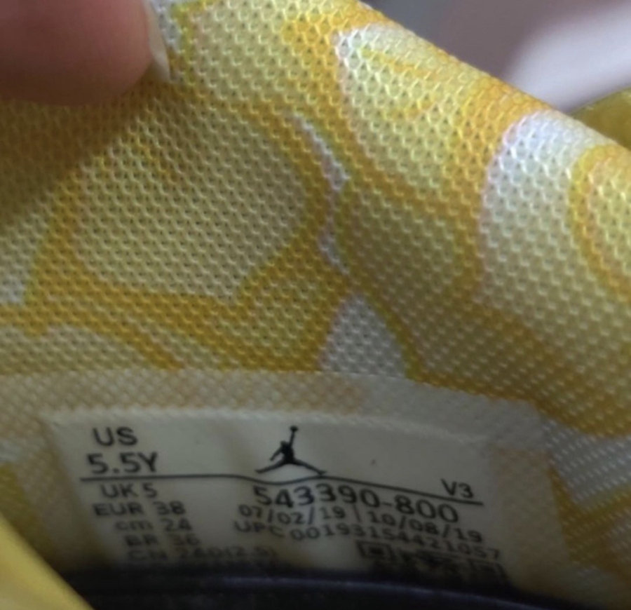 最大亮点当属黄色鞋舌上一朵巨大的黄色花朵刺绣,黑色线条勾边,同时还有绿叶相衬,其上一个黑色 Jumpman Logo,彰显出十足的霸气!